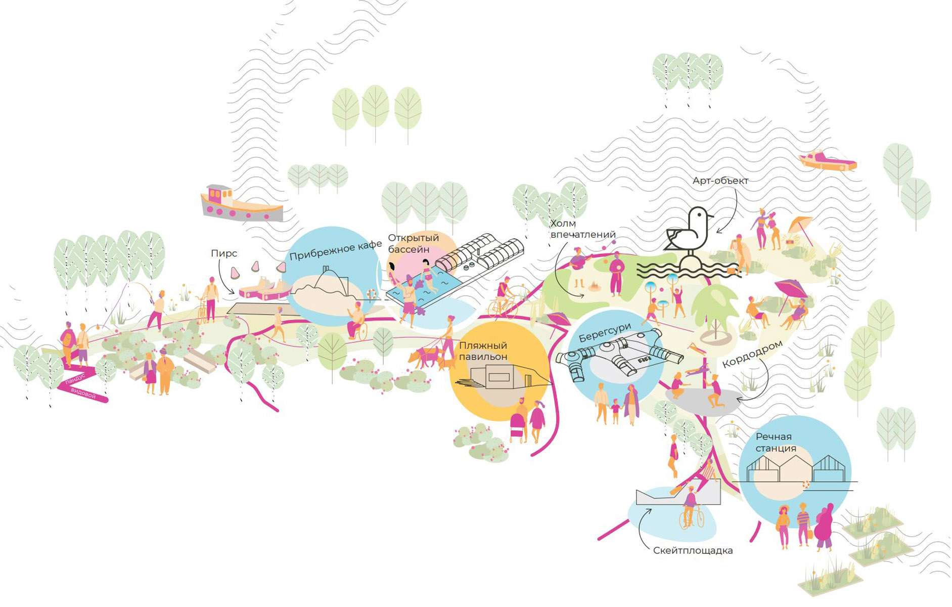 Так сложились три концепции, отражающие элементы и идентичность Урайцев, отличающие набережную от других городских пространств, отвечающие задачам городского развития и создающие пользовательский опыт.