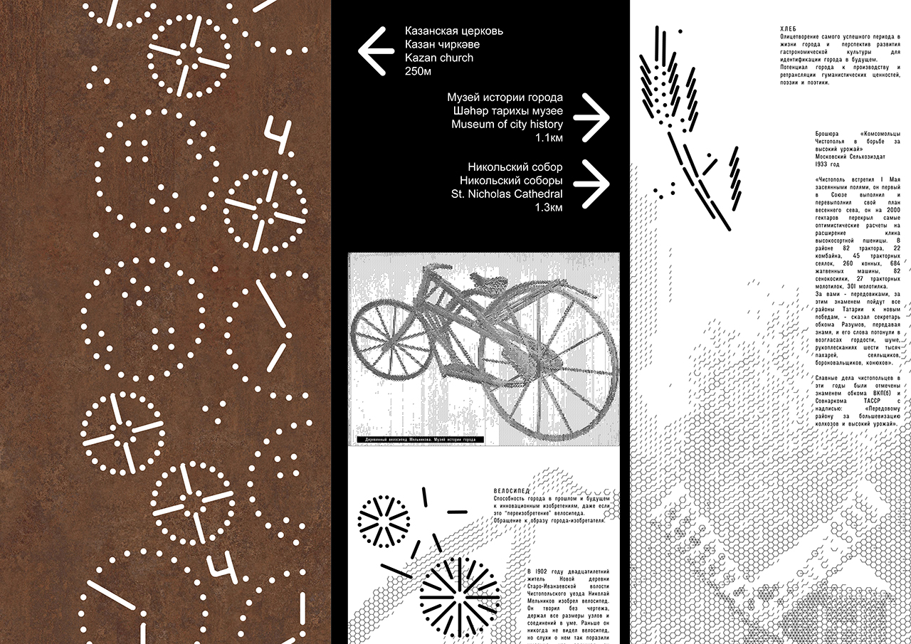 В рамках направления наследования и ретрансляции в будущее культурных ценностей развития города были разработаны специальные узоры, воплощающие смыслы, наследуемые будущим из прошлого. Содержание и дизайн воплощения этих культурных ценностей были обсуждены на публичных консультациях с общественностью города.