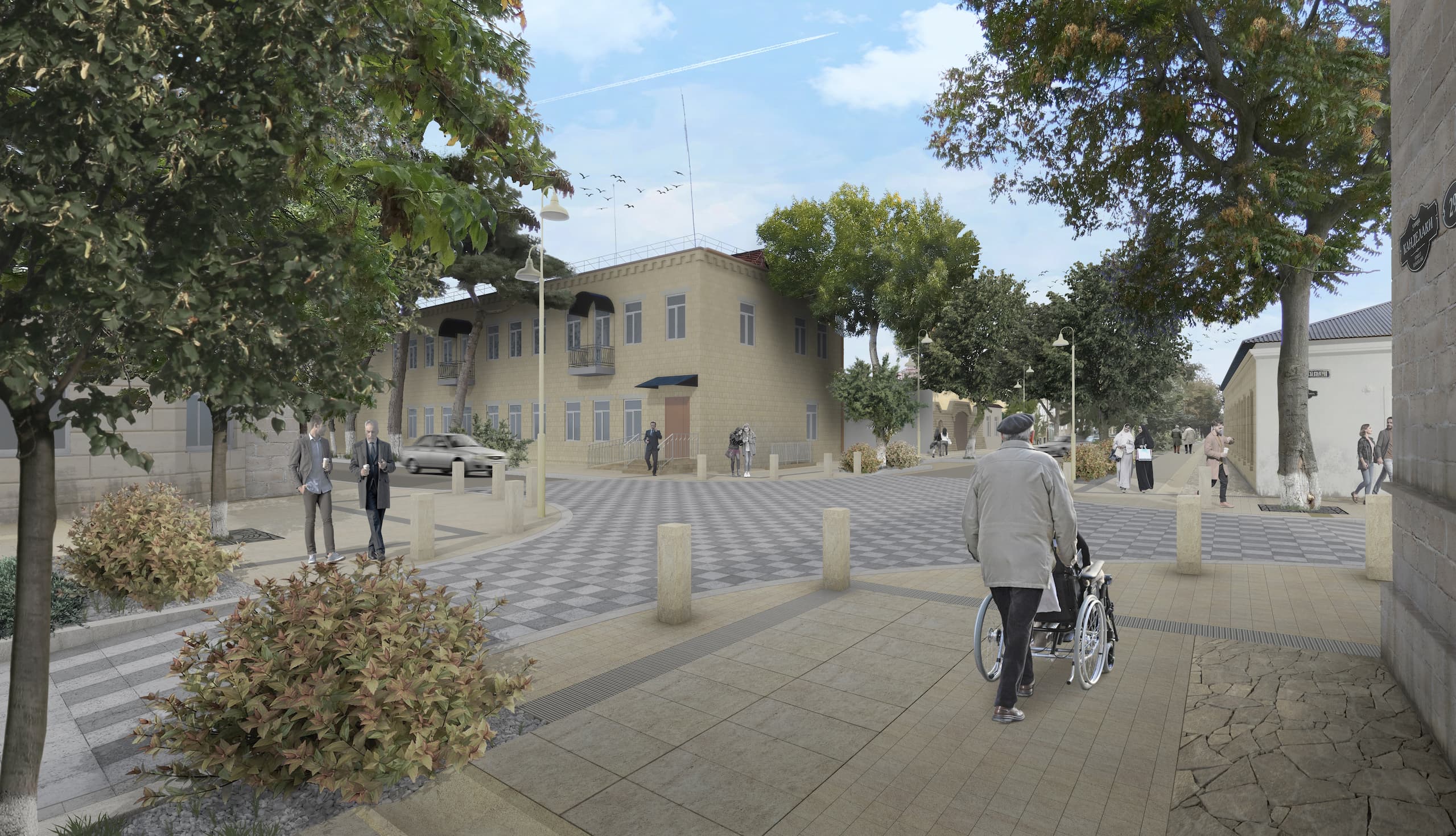 Из заставленной машинами улицы, Канделаки преобразится в прогулочный зеленый бульвар из рукельского известняка. Так проектом подчеркивается центральное положение и история улицы 19-го века.