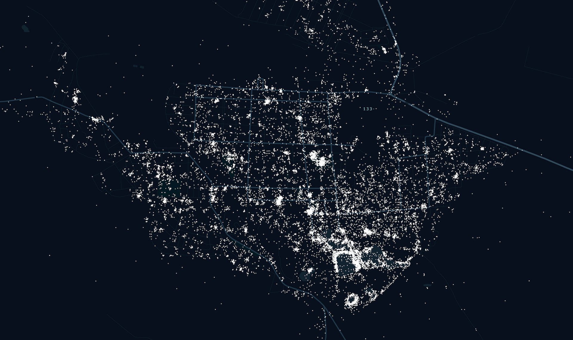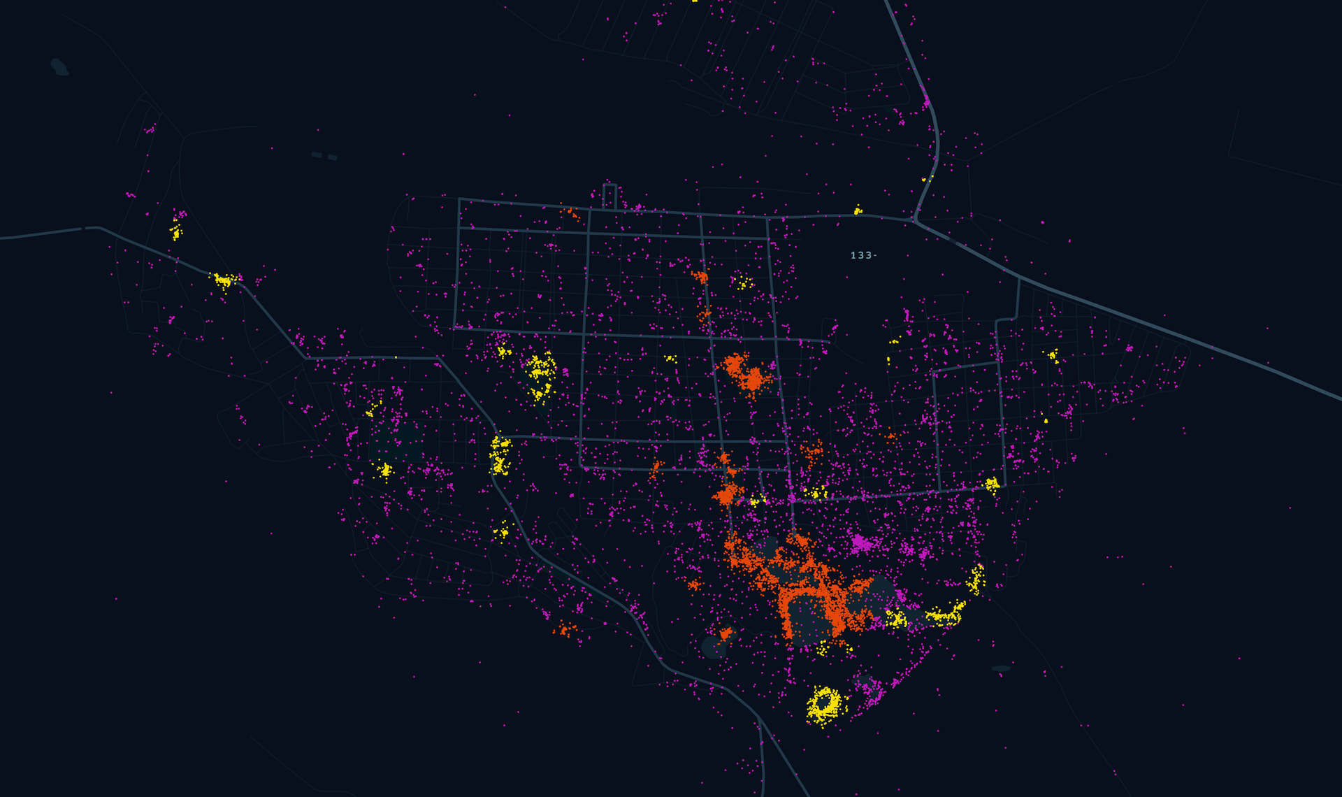 На основе кластеризации географических координат изображений формируется тепловая карта распределения фотографий городской среды. Карта наглядно показывает распределение наиболее популярных и фотографируемых мест, выявляет главные и локальные точки притяжения и их взаимосвязи: отдельные кластеры и системы пространств. Такой подход позволяет получить объективный срез социальных данных: непредвзятая социальная оценка (мнение пользователей) в отношении обозначенных проектных запросов, т.е. тепловая карта показывает существующий социально-культурный каркас рассматриваемой территории.