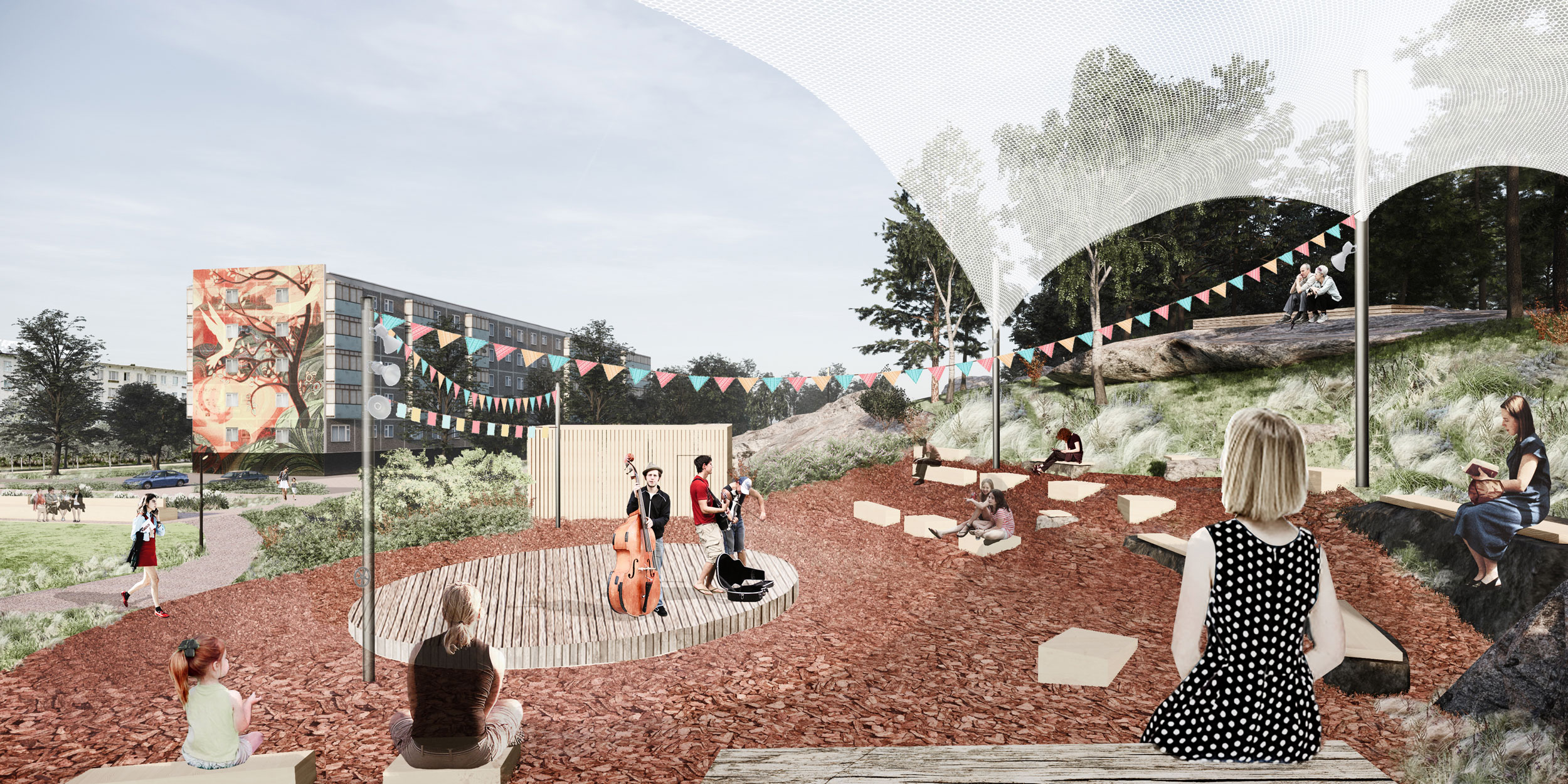 В рамках разработки проекта центральной улицы Питкяранты была разработана серия деревянных павильонов, подчеркивающих идентичность Карельского города и создающие новые сценарии на улице.