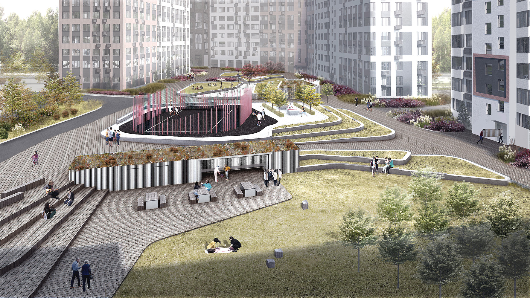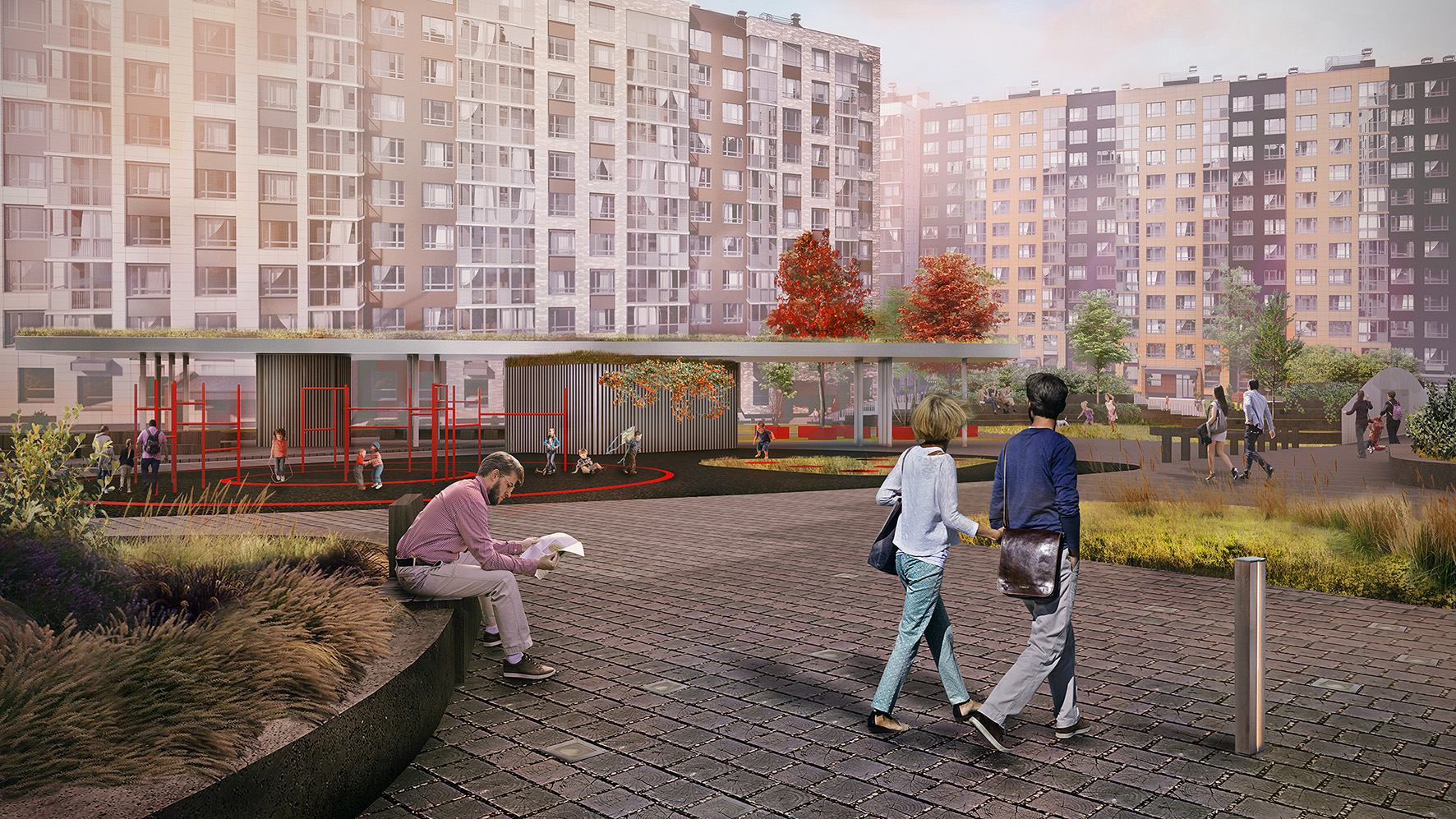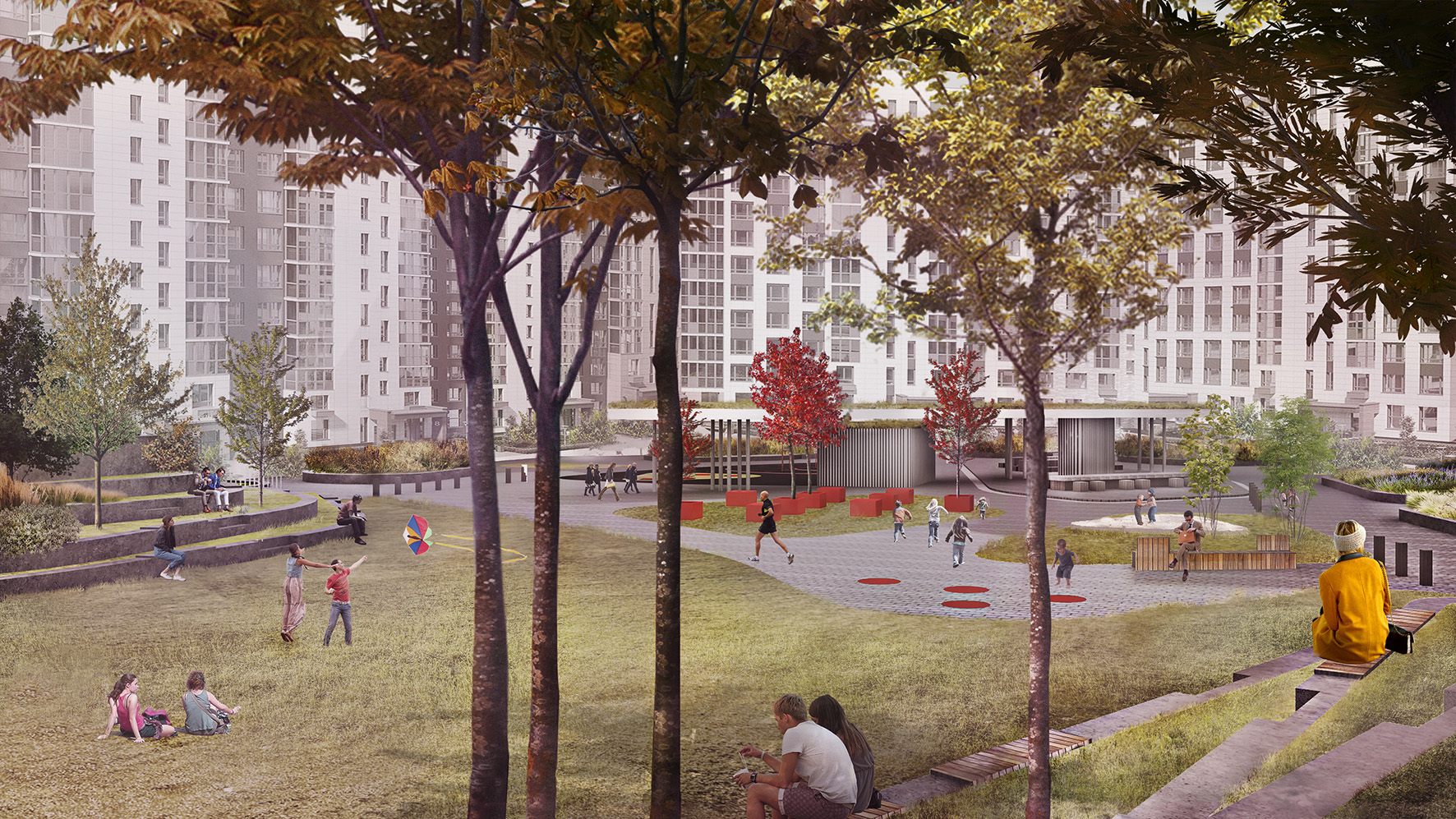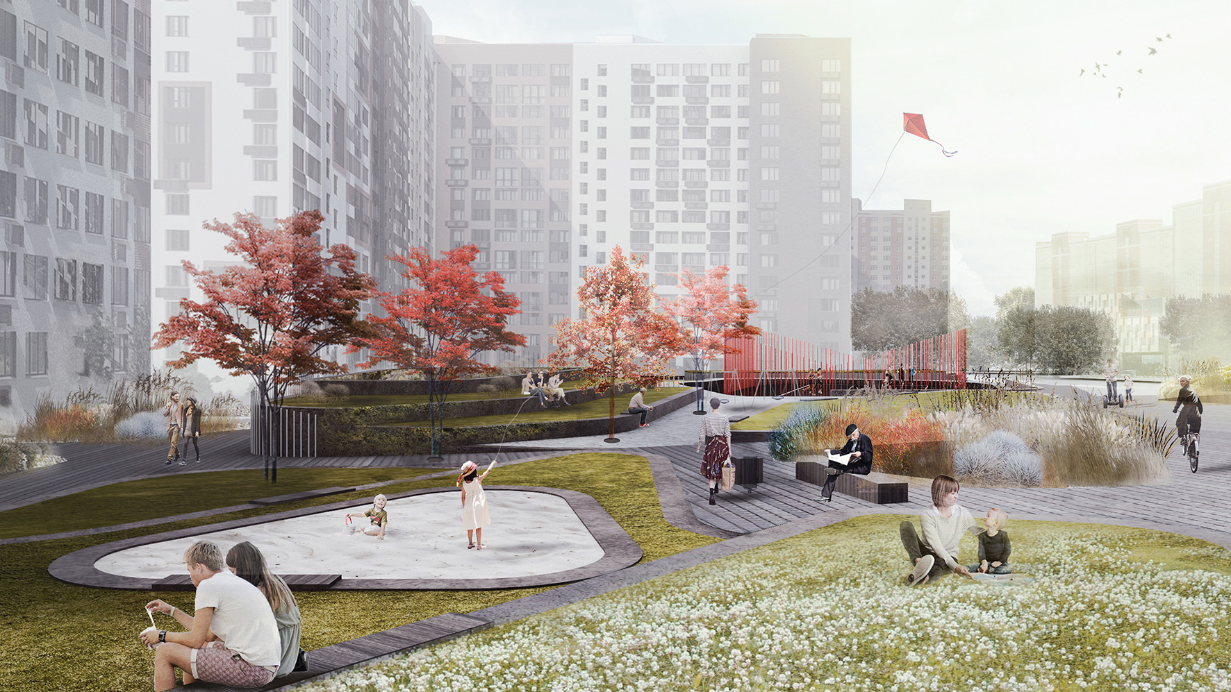 Концепция дизайна дворовых пространств жилого района Скандинавия А101 в Москве