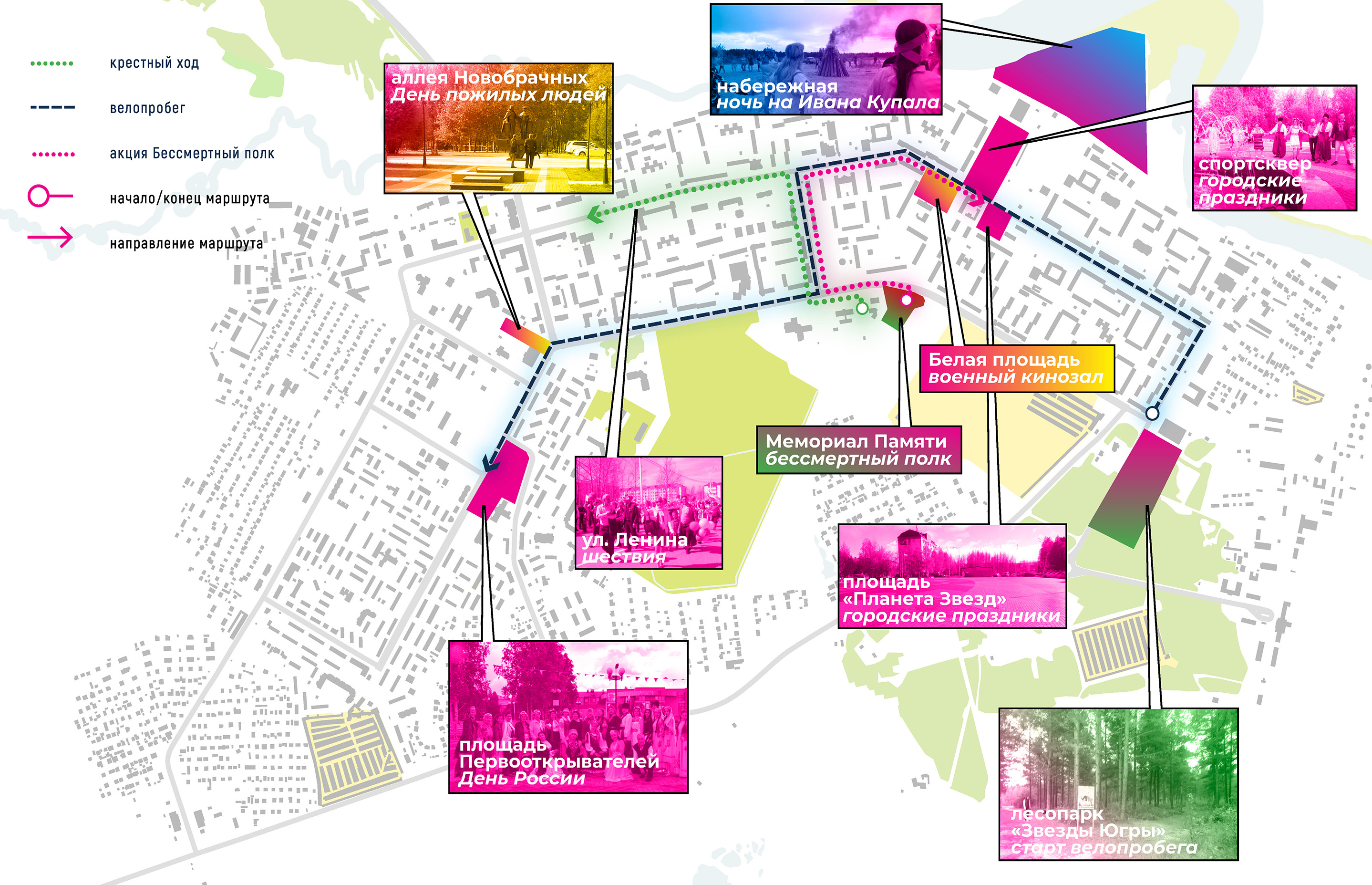 В ходе исследования открытых городских пространств города Урай выявлены четыре потенциальные точки роста: