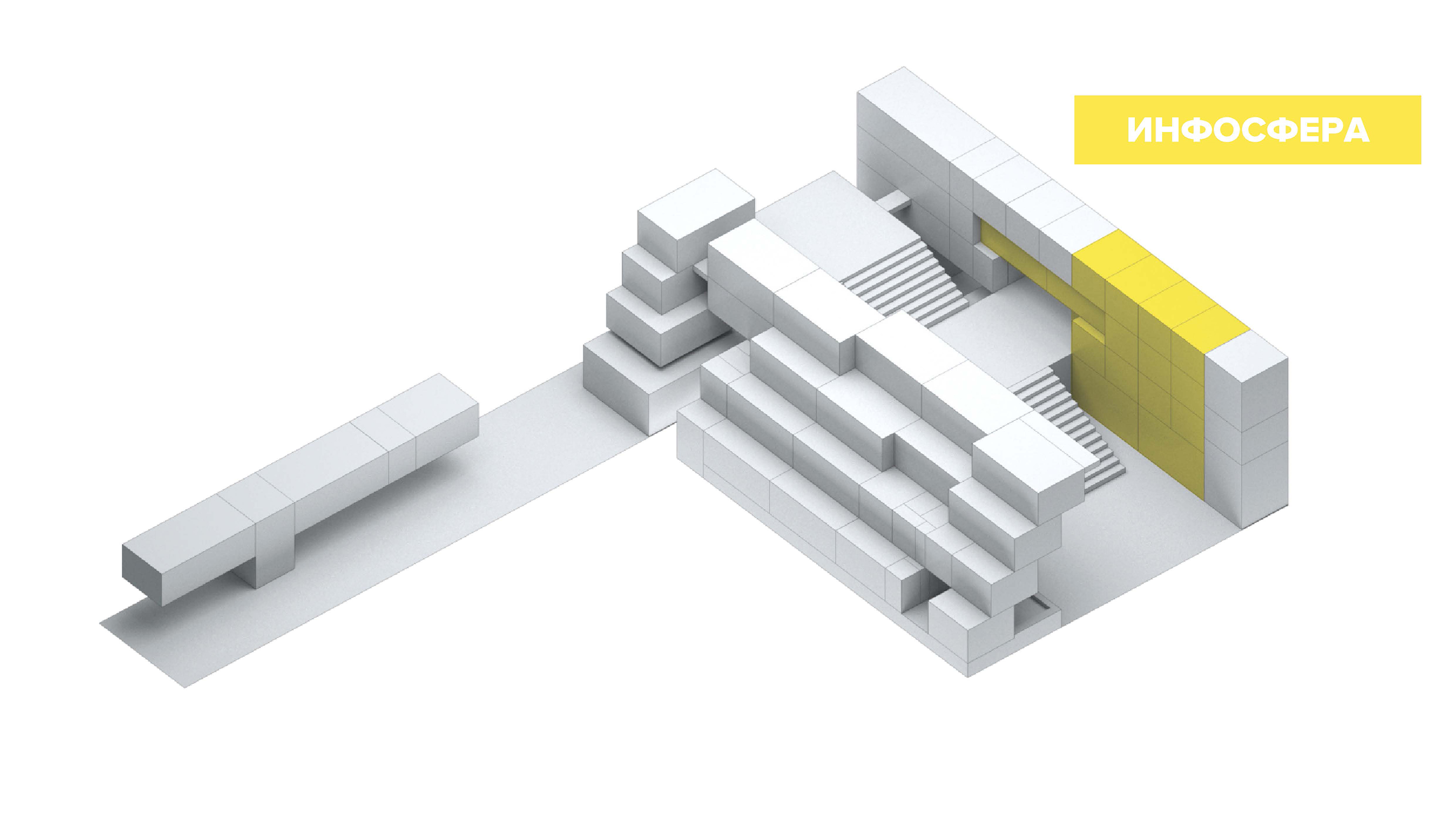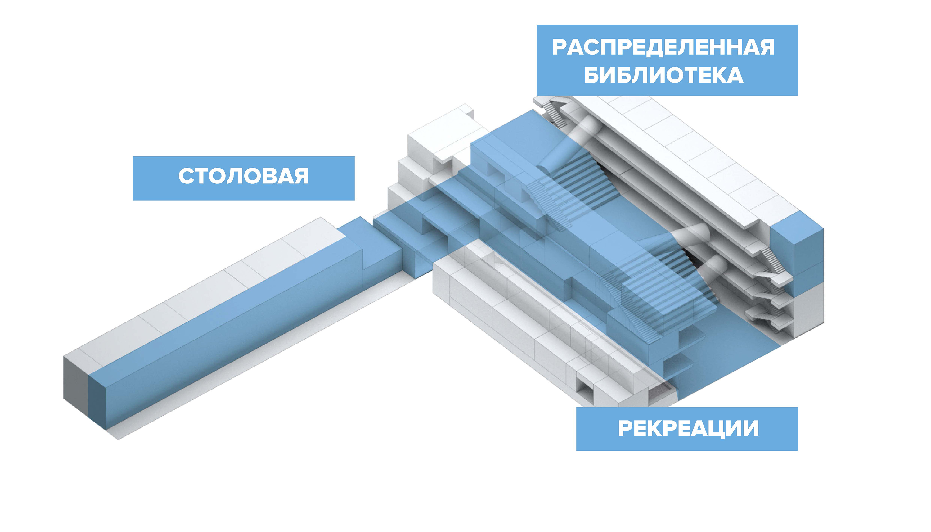 Между пластиной городского фасада образовательного центра и уступами классов школьного блока расположен «Каньон» - главное социальное и событийное пространство образовательного центра. Это центральное пространство включает рекреации школьного блока, компьютерных и лабораторных классов, вестибюль, актовый зал, лекционный зал, в него выходят кабинеты менеджеров и классы робототехники. В сценариях массовых событий пространство реконфигурируется так, что все причастные пространства могут быть активно или пассивно вовлечены в события.